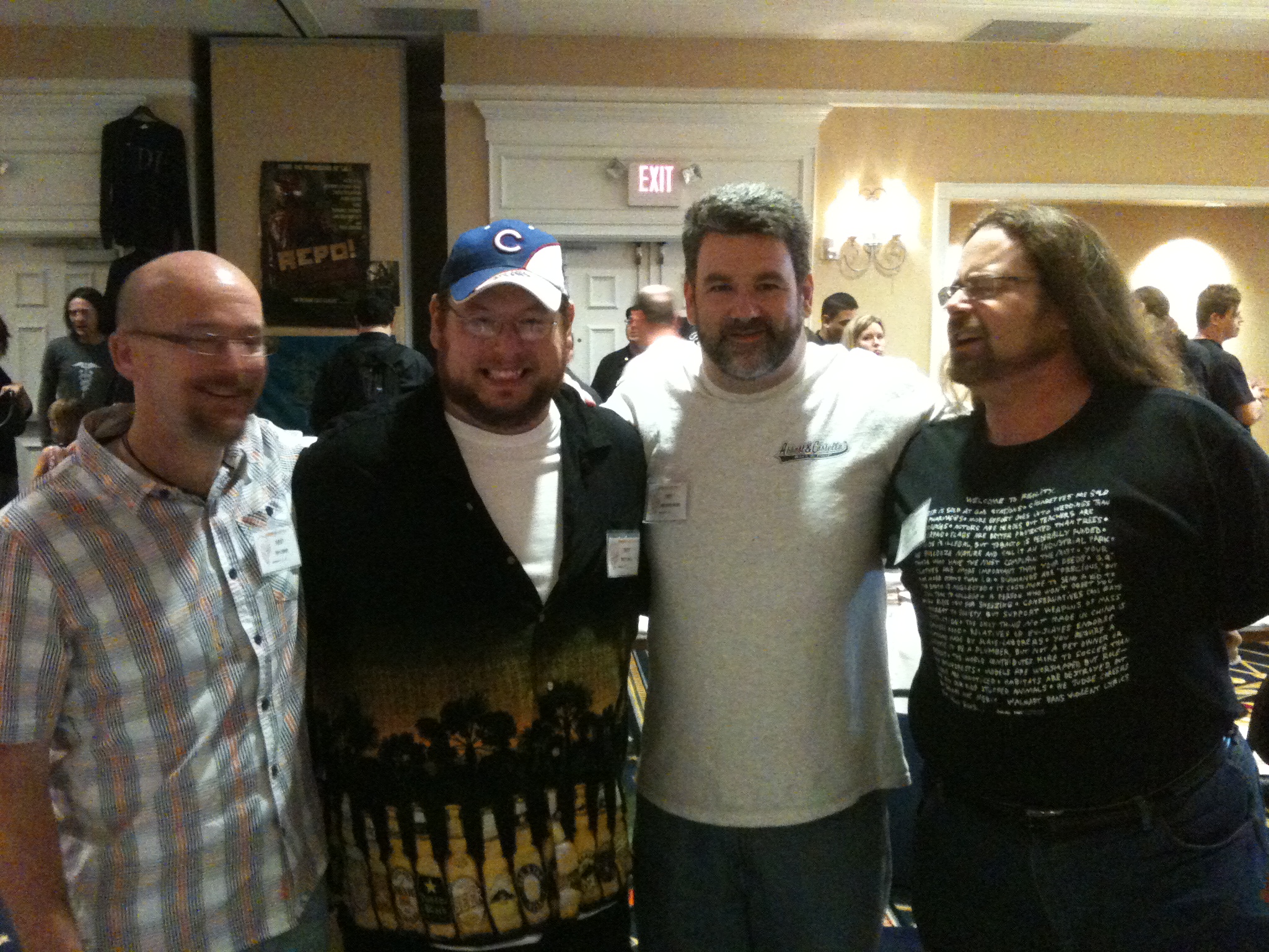 Good evening Coffin Hoppers! Wait, I can’t hear you. I said, GOOD EVENING COFFIN HOPPERS! Ok, much better that time around. I interrupt this year’s Coffin Hop to bring you the Main Event. Tonight, author Tim Lebbon steps into the ring and faces off with the “10 Questions”. Tim Lebbon is hands down, one of the best writers in the game today. His work has been a great influence and I hope to one day be half as good as the three guys I’m standing with in the picture. At Horrorfind 2011, I was a new author and arrived full of dreams and my first con reading slot. The weekend became a validation for me choosing to pursue writing. Before the con and during, I had the opportunity to speak with Tim a bit about the craft, the Hollywood horrors he’s encountered, and drink some beers. I’m going to stop blabbing and get on with what you all hopped over here for. Ladies and gentlemen, Tim Lebbon. (Note: The interview is from a few days ago and not from 2011)