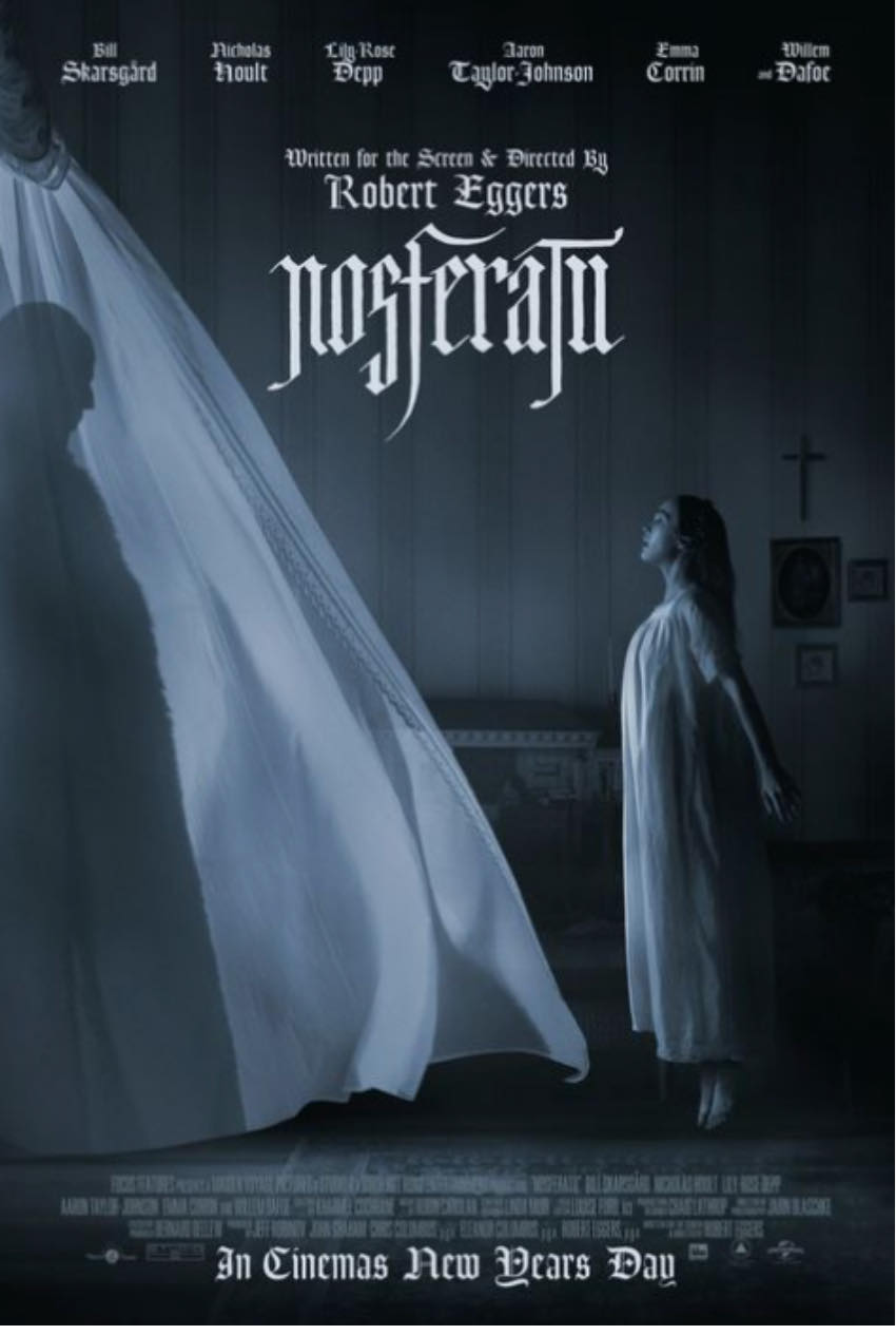 When I heard Eggers was working on a new version of Nosferatu, I was intrigued. I love the original silent film (I own a VHS of it with a Type O Negative soundtrack over the visuals). I am also a fan of Werner Herzog’s interesting take starring Klaus Kinski and Shadow of the Vampire (a fictional account of the filming of the silent Nosferatu starring Willem Dafoe as Count Orlok). Eggers has delivered two of my favorite films in recent memory, The Witch and The Lighthouse, so when the first pictures were released, my anticipation grew. When the first trailer dropped, I couldn’t wait for Christmas Day.