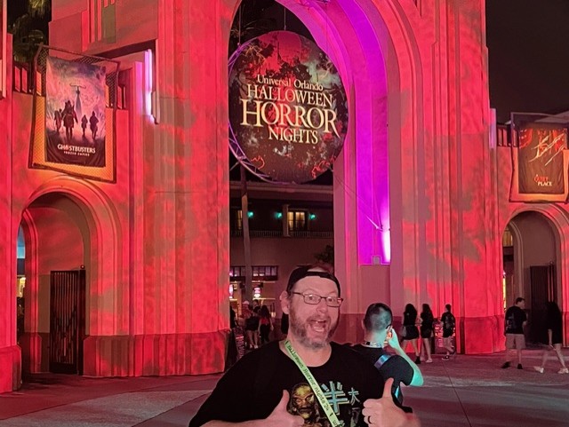 I know some of you are wondering what the hell is going on in here. You thought this was a site dedicated to my writing and the horror genre. Well, this is one of those times when my other side ventures into this dark corner of the universe. The picture shows a very happy me at Universal Studios Orlando’s Halloween Horror Nights in 2024. It was my first time attending, and I hope to make it an annual trip.